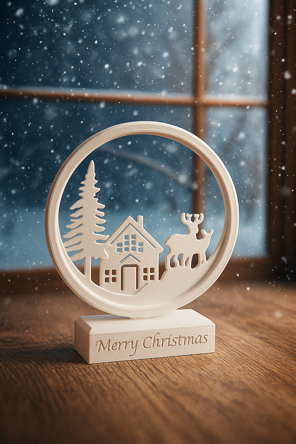 Świąteczna dekoracja 3D „Merry Christmas” – domek z reniferem
